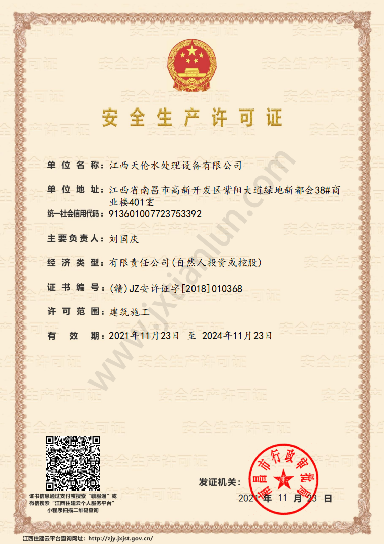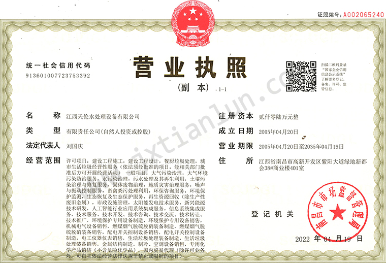 2005年:天倫進入高新開發(fā)區留學生創業園,進入快速發(fā)展階段,成立江西天倫水處理設備有限公司